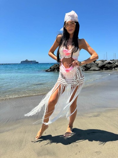 Komplet plażowy pleciony stanik i spódniczka z frędzlami kremowy Amerlo 89